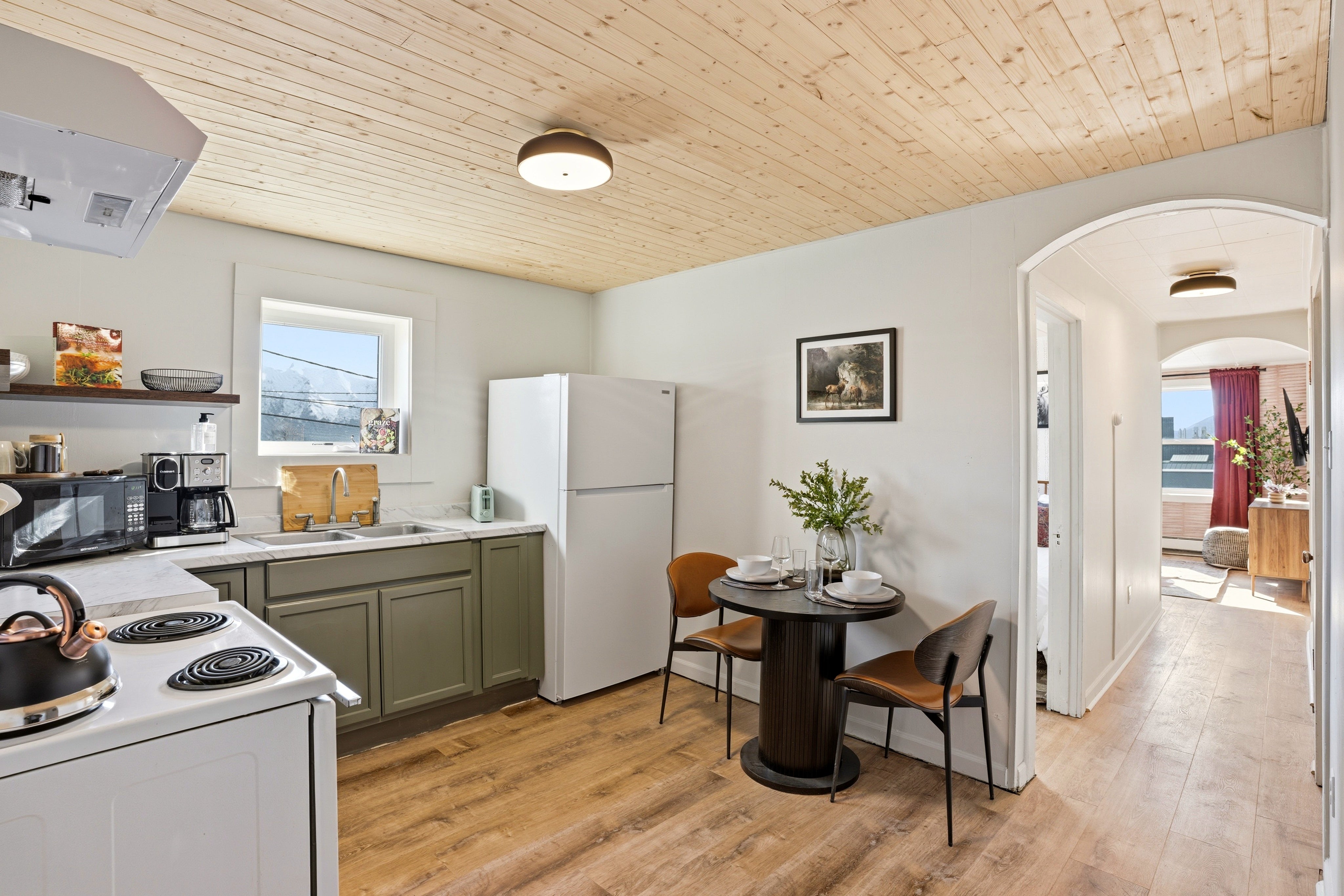 Eat your own food with full kitchens stocked with everything you need including pots, pans, coffee, dishes, soap and more...